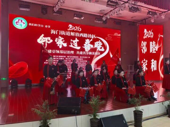 记者了解到,海门区海门街道解放西路社区的“春晚”已经连续举办了三届,和往年一样,这场全民参与的“邻家春晚”,不仅是一场文化盛宴,更是一次社区凝聚力的集中展示。随着老兵艺术团《祝福祖国永远是春天》的旋律响起,晚会落下帷幕。这场没有明星大腕、没有豪华舞美的“邻家春晚”,用最接地气的形式,展现了海门街道解放西路社区在探索基层治理现代化道路上的生动实践——让文化成为纽带,让邻里成为亲人,让社区成为家园,在这里,“美好解西·幸福邻里”已经从口号变成了现实。正如该社区书记黄海在致辞中所言:“只有让居民真正参与进来,社区才有温度,邻里才有感情,家园才有未来。”