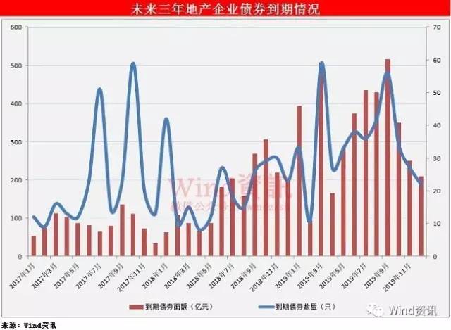 Wind资讯(微信号windzxsh)统计数据显示,2016年全年,房地产行业共有90只债券到期,累计到期债券面额659.94亿元。而到了2017年,其到期债券数量将达265只,累计到期债券面额1002.81亿元。