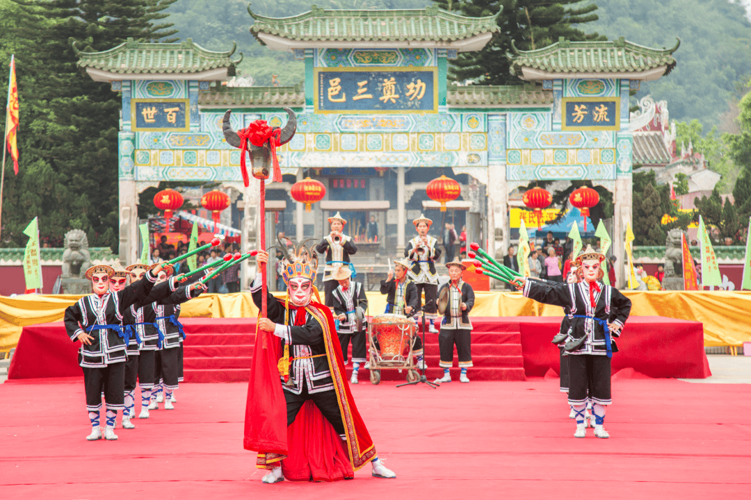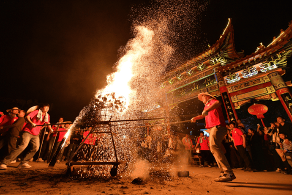 在新兴县太平社墟村,每年农历二月初十的“下元”期间,都会举行一场盛大的舞火簩庆典。这项始于唐代末期、传承千年的省级非遗,核心是对火图腾的崇拜,融合了驱疫祈福、庆祝丰收的美好愿望。